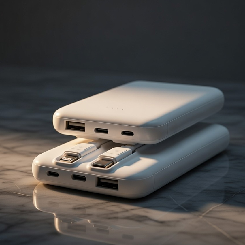 • 5,000 mAh power bank with built-in USB-C and Lightning cables and ports