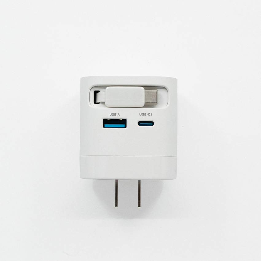 • 65W GaN wall charger with built-in retractable USB-C cable, extra USB-A and USB-C ports
